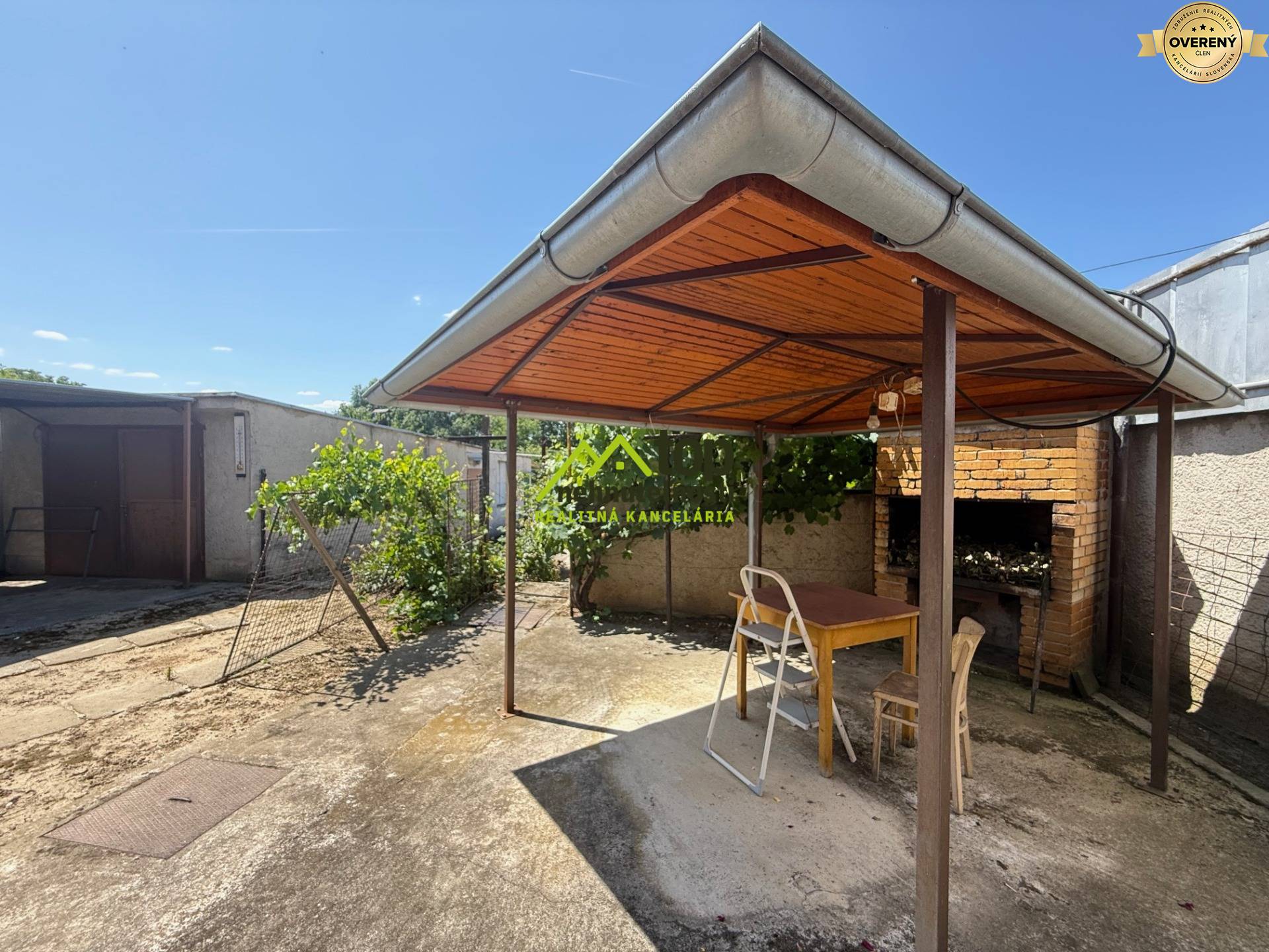2 garáže (jedna s jamou) + letná kuchynka, udiarňa a záhrada pre relax alebo hobby